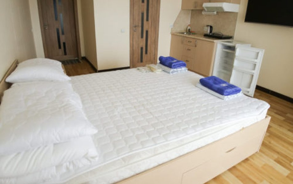 В номере: кровати односпальные /одна двуспальная кровать, кухонная мебель, прикроватные тумбочки, стол, стулья, мини-кухня, кондиционер, мини-холодильник, набор посуды, плита электрическая, телевизор, электрочайник