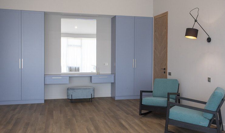 В номере: кровати двуспальные, кухонная мебель, набор мягкой мебели, прикроватные тумбочки, стол, столик журнальный, стулья, шкаф, гладильная доска, кондиционер, микроволновая печь, набор посуды, сейф, сплит-система, телевизор ЖК: 3, телефон, утюг, холодильник чайная станция и бутилированная вода