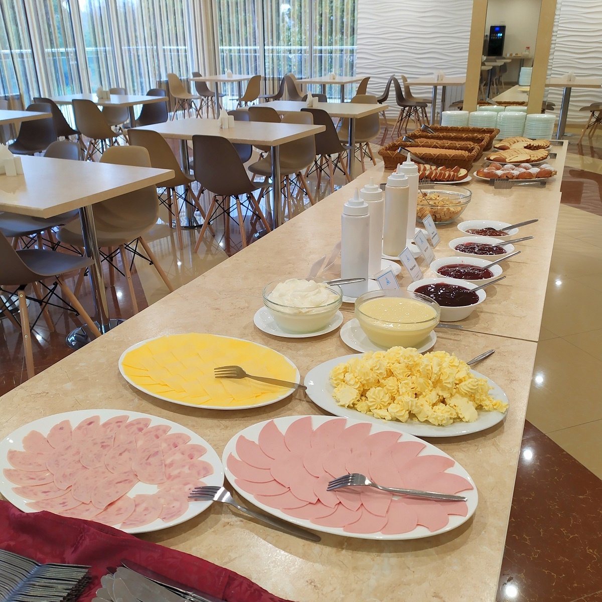 В меню Вы всегда можете найти : свежие салаты, ароматные мясные блюда – отбивные, котлеты, филе, запеканки, полезные гарниры, аппетитную свежую выпечку. Повара санатория разрабатывают меню с учетом сезона, профилей лечения.
