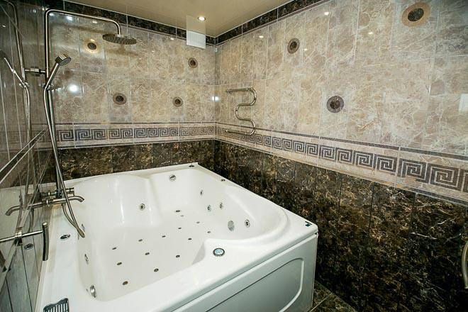 Санузел: с джакузи, туалетные принадлежности, фен, халат