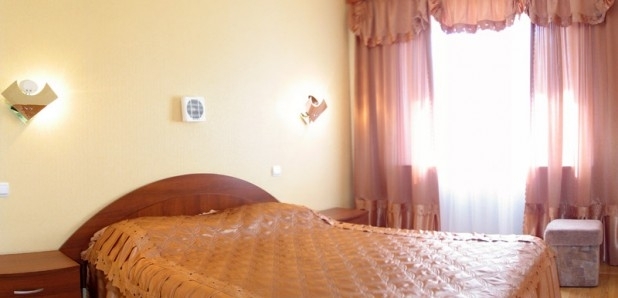В номере: две 1,5-спальные кровати, тумбочки, бра, коврики, туалетный столик, два встроенных платяных шкафа, ТВ, кондиционер, радио, выход на балкон (летняя мебель).