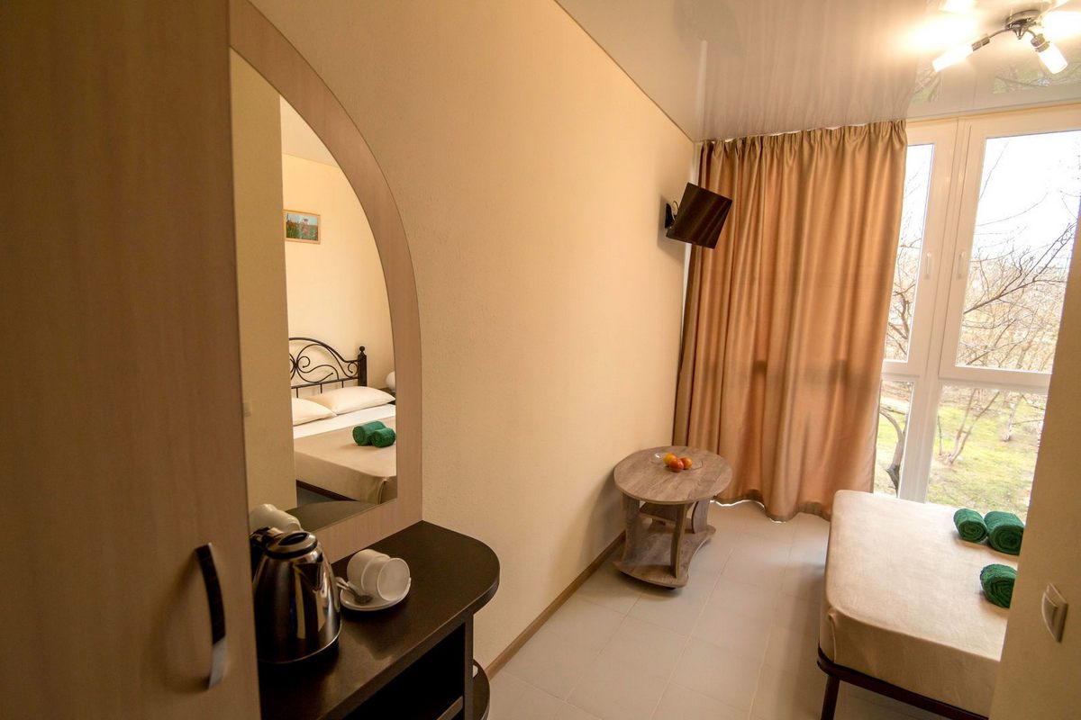 В номере: двуспальная кровать или две односпальные, прикроватные тумбы, стол, шкаф для одежды, кондиционер, ЖК телевизор, Wi-Fi, холодильник, электрочайник