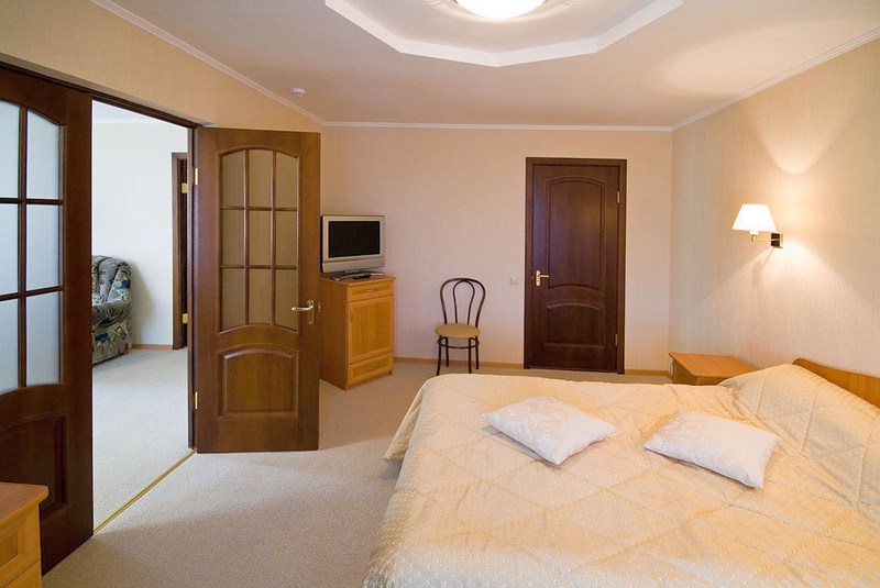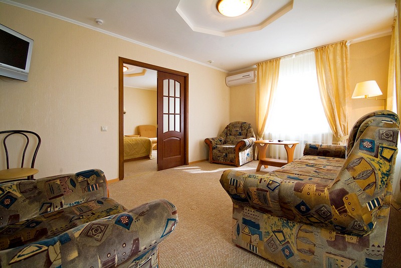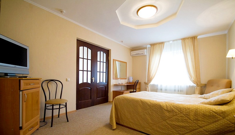 В номере: двухместная кровать или две односпальные кровати, две тумбочки, кресло, журнальный столик, мини-бар, холодильник, телевизор, туалетный столик, стулья,  шкаф, бра, кондиционер (не все номера).
